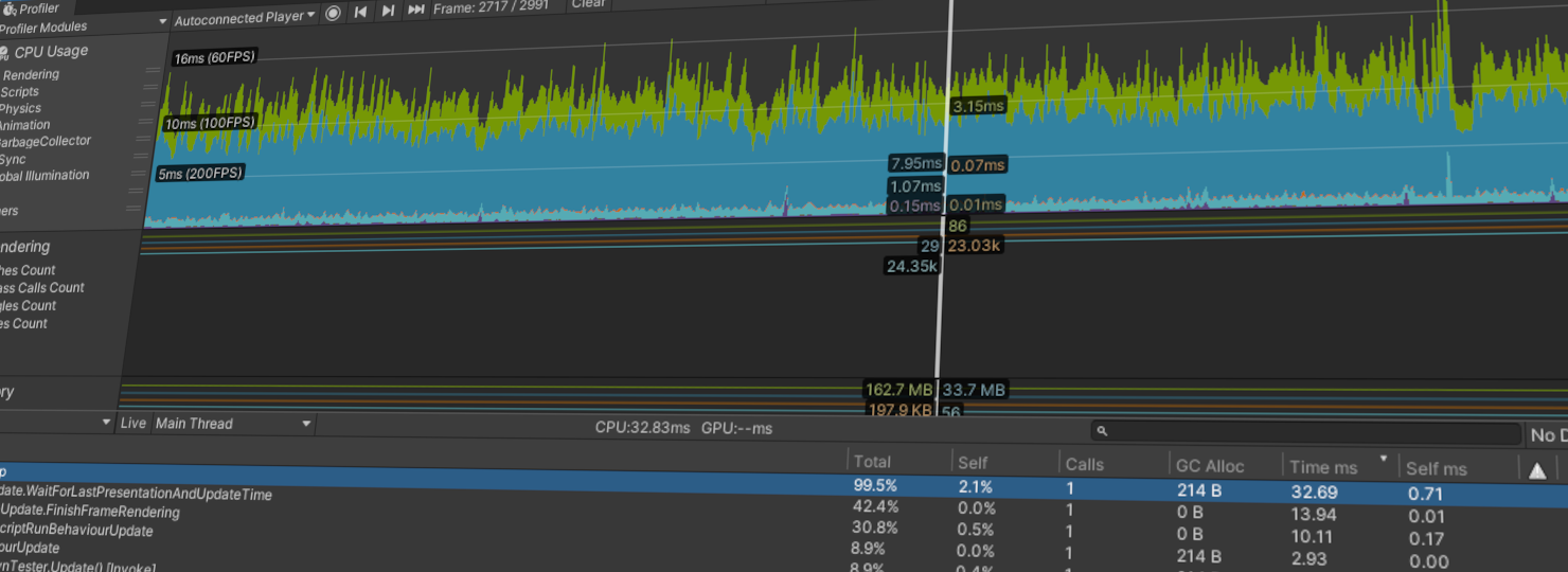However, in the interests of my own sanity, these setups will have to be quite simple. They then probably wouldn’t cause an issue on any modern PC or even previous-generation consoles. Luckily for me, I have a piece of hardware lying around which will still show some decent spikes in the profiler in these simple setups!